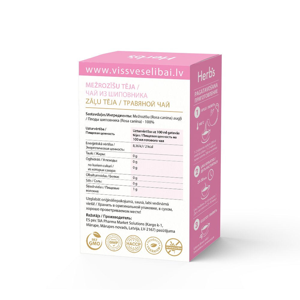 Sastāvdaļas: Mežrozīšu (Rosa canina) augļi – 100%