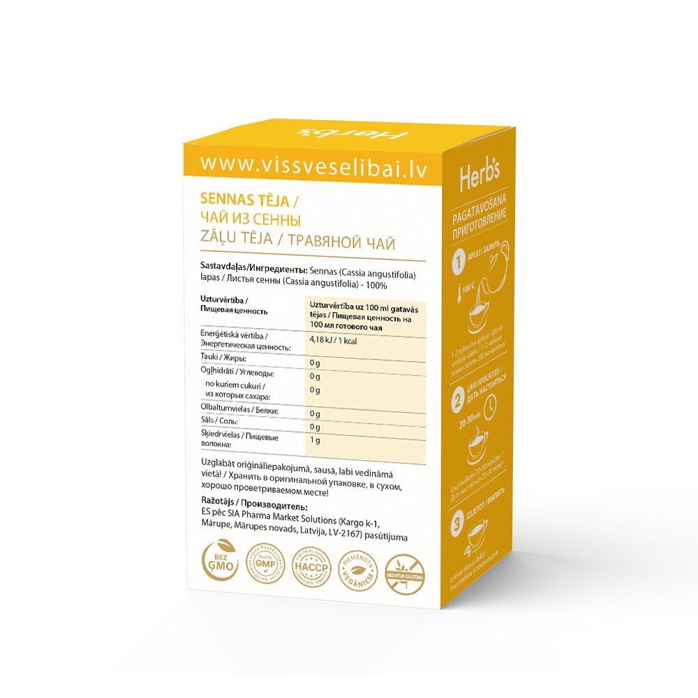 Sastāvdaļas: Sennas (Cassia sngudtifolia)lspsd – 100%