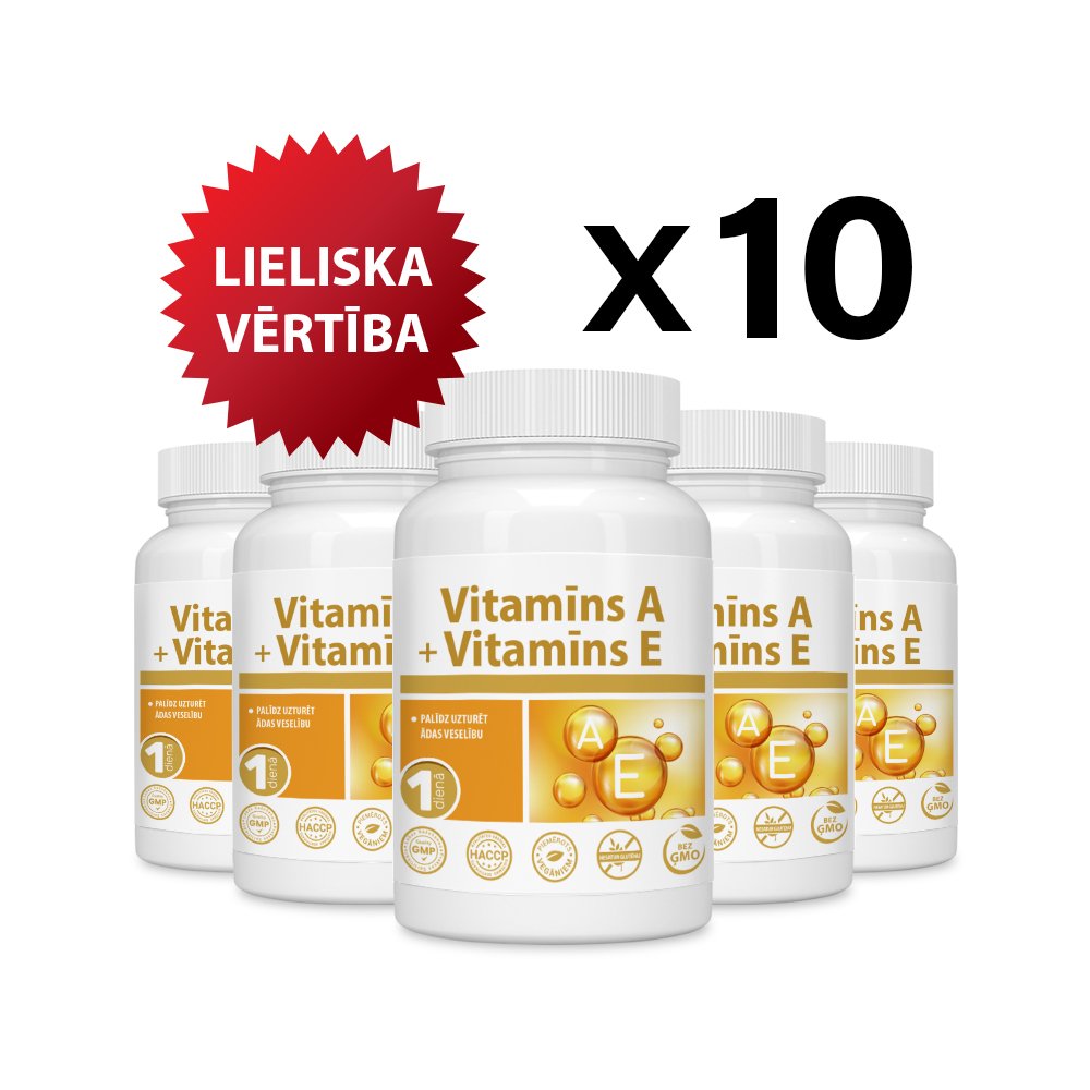Sākotnējā cena bija: 45.90€.39.00€Pašreizējā cena ir: 39.00€.10 gab. komplekts —VITAMĪNS A + VITAMĪNS E / VITAMIN A + VITAMIN E tabletes